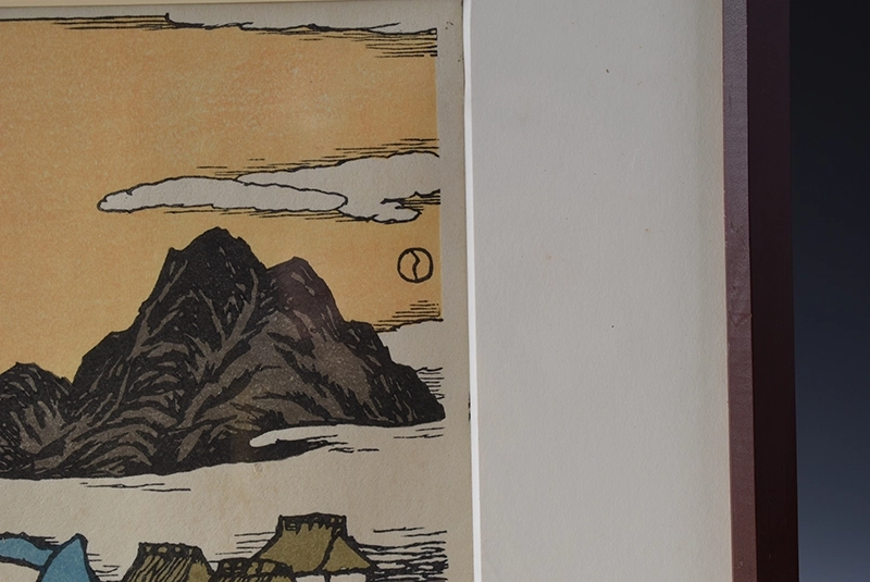 木版画は、摺りの濃淡や線の締まりが見どころ。退色、にじみ、摺りムラが強い場合は印象が変わるため確認します。