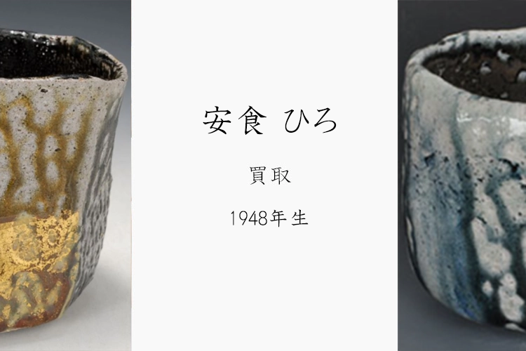 安食ひろ(あじき ひろ)は、1948年に島根県に生まれた陶芸家です。若い頃にインドや欧州、アフリカを放浪した経験が、のちの作風に大きな影響を与えました。1975年に出雲で窯を築き本格的に作陶を開始。以降、田部美術館大賞「茶の湯の造形展」で大賞や優秀賞を重ね、現代茶陶の重要作家として知られます。