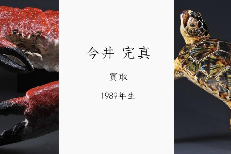 今井完真は1989年京都府に生まれ、東京藝術大学大学院で陶芸を学んだ若手実力派作家です。修了作品展では三菱地所賞を受賞し、以降「ゾクッとするリアリズム」展や「いきもの狂騒曲」など、いきものの造形美をテーマにした展覧会で注目を集めています。