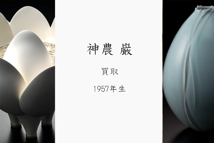 神農巌の青磁・堆磁作品を買取|名古屋・岐阜・三重で出張査定 神農巌(しんのう いわお)は、堆磁(ついじ)技法による青磁表現で知られる陶芸家で、紫綬褒章、日本伝統工芸展受賞、滋賀県無形文化財保持者など受賞歴も多数。祈りや清らかさをテーマに、蓮花や鳳凰をモチーフとした作品に高い評価があります。 美術三冬花では、神農巌作品の買取を愛知(名古屋)・岐阜・三重で強化しています。お気軽にご相談ください。