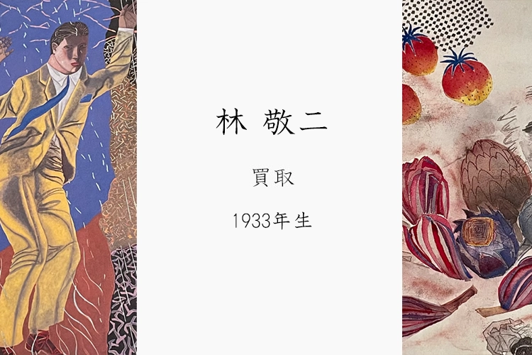 横浜・馬車道の楽器店に生まれた林敬二は、幼少期のにぎやかな街の空気を胸に、自由な感性で絵画の道を歩みました。東京藝大卒業後、イタリアに留学して西洋美術に触れ、帰国後は独立展や十果会で活躍。彼の作品には「見えないものを描く」独自の哲学が貫かれています。詩のようで音楽のような空間に、浮遊する人々や形象が現れ、色彩と旋律が共鳴する——。林敬二の絵は、時代や領域を超えて観る者に自由な想像の翼を与えてくれます。