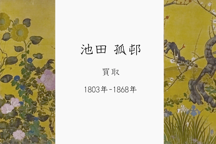 池田孤邨は江戸琳派の巨匠である酒井抱一の有力な門人として知られる画家です。越後水原の出身で、江戸に出て抱一に学び、琳派の花鳥画や草花図を中心に活躍しました。