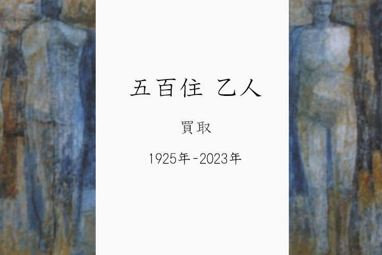 五百住乙人は脇田和に師事し、戦後日本洋画界で独自の人間表現を追求してきた洋画家です。新制作展や立軌展を舞台に活躍し、個展も数多く開催。代表作《何処へ》では、逆方向に歩む人物を無言劇のように描き、見る者に人間存在そのものを問いかけました。その流れを受けた《表裏二体》では能面のように表情を消し、人物像を舞台上に立つトルソのように表現。さらに《白い道》では夜の道を抽象的に描き、幾何学的な構成と幽玄な世界観を示しました。画集も刊行し、近代洋画史に独自の足跡を残しています。