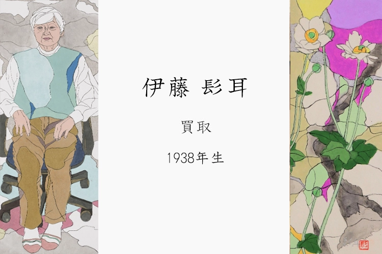 伊藤髟耳は、多摩美術大学で学び、院展を中心に活躍しました。繊細で清澄な色彩と、研ぎ澄まされた線描による人物・風景表現で知られます。