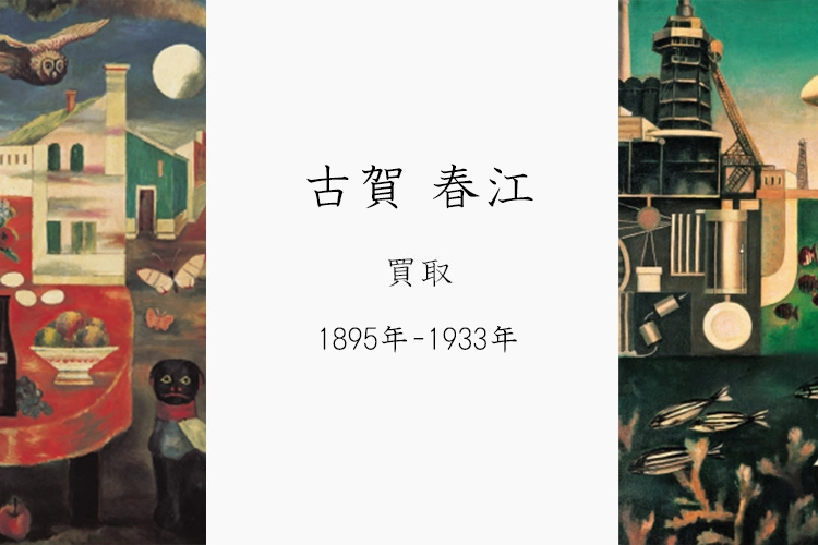 古賀春江は明治28年に福岡県久留米市で生まれた洋画家です。仏門の家に生まれ、東京で太平洋画会研究所に学びました。セザンヌの影響を受けた水彩画から始まり、キュビスムや未来派、クレー、シュルレアリスム、さらにはバウハウスまで。20世紀初頭の西欧美術の流れを次々と吸収しました。