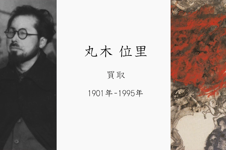 1901年6月20日 広島市に生まれる 1923年 田中頼瑋、川端龍子に師事 青龍社展へ出品、美術文化協会・歴程美術協会に参加 1945年 原爆投下直後、広島に妻・丸木俊と共に入り《原爆の図》を共同制作 1967年 原爆の図丸木美術館開館 1988年 ナイアガラ訪問中、マサチューセッツ州立芸術大学より名誉芸術博士号授与 1995年10月19日 死去。享年94