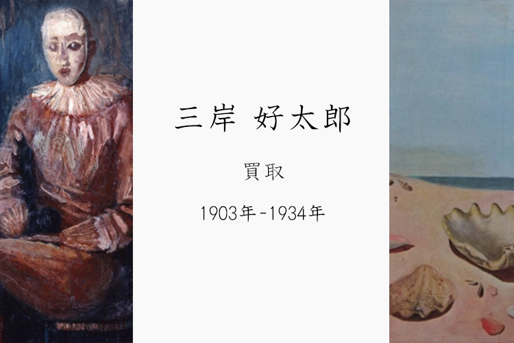 三岸好太郎は、明治の末に北海道で生まれた洋画家です。 上京後、岸田劉生やルソーの影響を受け、素朴な人物や風景から画業を始めました。やがてルオー風の厚塗り、キュビスム的構成、さらには幻想的な蝶や貝殻の連作へと、短い生涯の中でめまぐるしく作風を変化させます。 理知的な構成と抒情性が融合した晩年の作品は、西欧の合理主義とシュルレアリスム的感性が混ざり合う独自の世界を生み出しました。1934年、名古屋滞在中に急逝。31歳という若さで世を去りましたが、その表現の豊かさは今も高く評価されています。