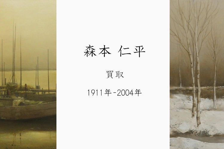 森本仁平の風景画・油彩を高価買取|名古屋・岐阜・三重で出張査定 森本仁平(もりもと にへい)は、自由美術家協会で活躍し、戦後日本の写実絵画を象徴する洋画家です。戦中に体験した過酷な捕虜生活からの脱出という壮絶な経験を経て、田畑・川・漁港・舟といった素朴な風景を題材に生涯描き続けました。静かな画面の中に人の気配を漂わせるその作風は、今も多くのファンに愛されています。 当店「美術三冬花」では、名古屋市をはじめ岐阜・三重エリアで、森本仁平の油彩・風景画を高価買取しております。個展発表作や石川県立美術館に関連する作品、自由美術家協会展出品作などは特に評価が高い傾向にあります。 出張買取・宅配買取・店頭買取に対応、査定は無料です。森本仁平の絵画売却をお考えの方は、ぜひお気軽にご相談ください。