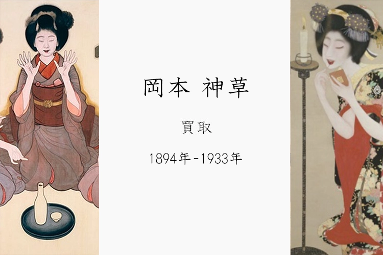 岡本神草は、舞妓をモティーフにした新興美人画で強い印象を残した日本画家である。兵庫に生まれ、京都市立絵画専門学校で学んだ神草は、卒業制作《口紅》で第1回国画創作協会展に初入選し、一気に注目を集めた。妖艶で官能的、そして浮世絵の香りをまとった女性像は、当時の空気を鋭く映し出していたと言える。