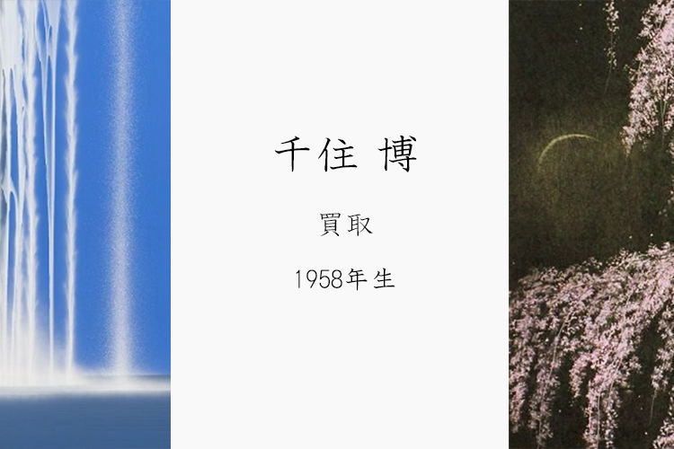 現代日本画の巨匠・千住博は、滝の絵で知られる世界的アーティストです。東京藝術大学で学び、日本文化の本質を探るために渡米。自然と静寂、抽象と具象が融合した独自の表現を追求し、1995年ヴェネツィア・ビエンナーレで東洋人初の名誉賞を受賞しました。代表作《ザ・フォール》は、日本画の精神性を世界へ伝えた記念碑的作品です。岩絵具による繊細な質感と崇高な世界観は、今も多くの人々を魅了し続けています。