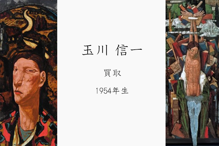 玉川信一は1954年福島県生まれの洋画家。 東京教育大学大学院を修了後、二紀展・昭和会展・安井賞展などで受賞を重ね、国立国際美術館などにも作品が収蔵されています。 約30年以上にわたり筑波大学で教鞭をとり、多くの若手作家を育てました。 平成から令和への節目には、表現者としての再出発を記念して大作《蕁麻の庭》《愚者の階梯》を制作。 自らの内面と人生の変化を象徴的に描いたこの2作には、教育者として、また一人の画家としての深い省察が込められています。