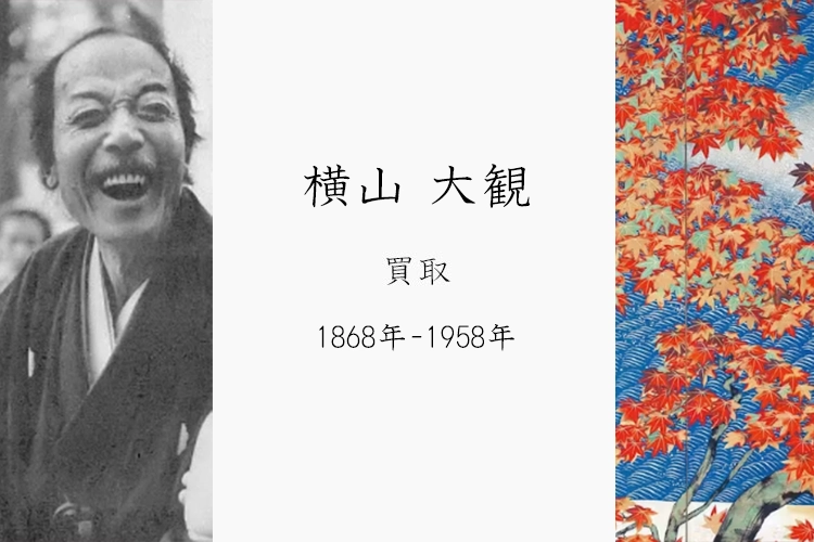 1868年 常陸国水戸(現在の茨城県水戸市)に生まれる 1878年 一家で上京 1883年 絵画に興味を持ち、渡辺文三郎に師事 1888年 東京美術学校を受験し、養子縁組により横山姓を名乗る 1893年 東京美術学校を卒業し、京都で修養 1895年 京都市立美術工芸学校で教諭として勤務 1896年 東京美術学校の助教授に就任 1907年 国が主催となって、官営の「文展」(文部省美術展覧会)が開催され、審査員を務める 1928年 イタリアの最高指導者ベニート・ムッソリーニに『立葵』を献呈 1938年 ドイツ総統アドルフ・ヒトラーに献呈するための作品『旭日霊峰』を完成 1958年 死去